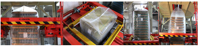 針對大型物品的全自動套膜收縮包裝機。可根據托盤尺寸,將筒膜自動進行裁剪制成口袋,并套在托盤物品上,進行收縮包裝, 使整個托盤達到全封閉效果,物品與托盤成為一體,不容易散落。